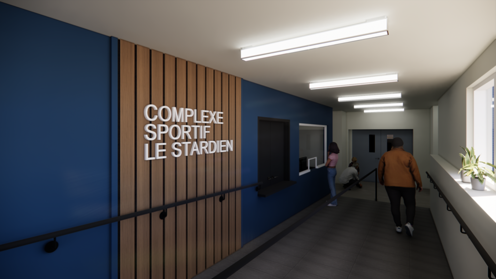 Le deuxième scénario met aussi aux normes le bâtiment actuel, mais le transforme en centre multisport comme on le connaît depuis 2024, avec des surfaces de pickleball, de dek hockey et multiusage.