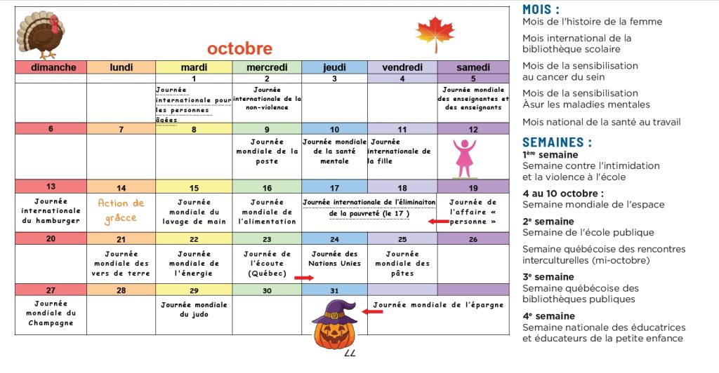 Quand on pense au mois d’octobre, on pense à l’action de Grâce, à l’Halloween et au froid qui s’installe lentement. Mais, le mois d’octobre c’est aussi le mois des femmes au Canada depuis 1992. De plus, deux journées, le 11 et le 18, soulignent respectivement la journée internationale des filles et la journée de l’affaire « personne».