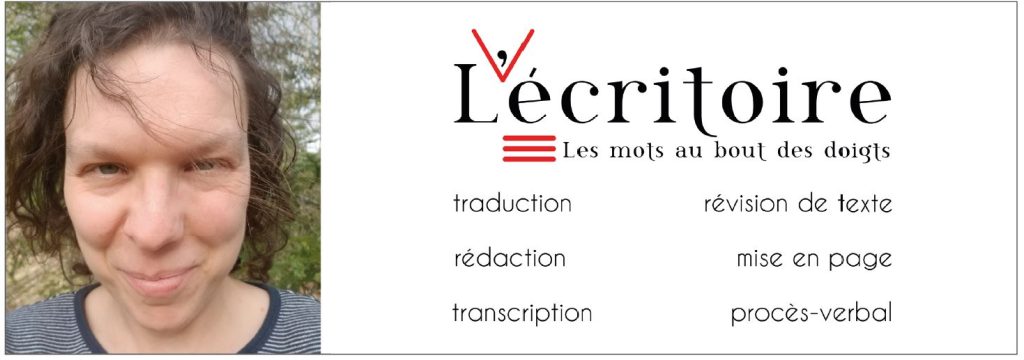 Son entreprise L’Écritoire —Les mots au bout des doigts ! révèle ainsi son côté pratico-pratique où elle rassemble tous ses outils linguistiques, mais également son côté créatif où la seule limite est celle des mots ! C’est d’ailleurs dans son chez-soi ici à Saint-Denis-de-Brompton qu’elle se ressource et développe sa créativité au profit de ses clients.