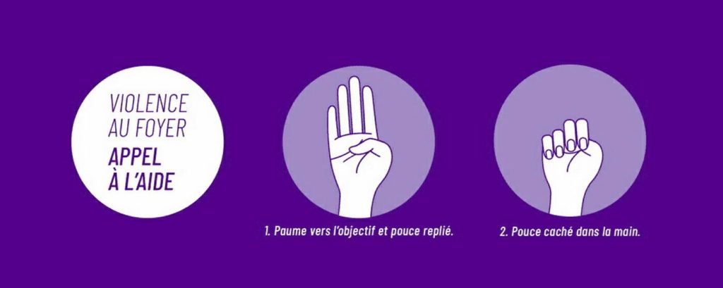 Les femmes peuvent effectuer ce signe lorsqu’elles sont prises avec un partenaire violent pour demander de l’aide.